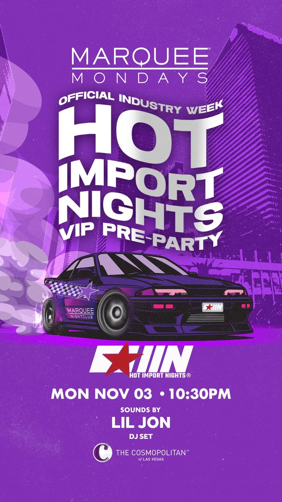 The Hot Import Nights Industry Party returns to Las Vegas for a night of high energy, luxury, and culture — taking over Marquee Nightclub inside The Cosmopolitan on Monday, November 3rd, 2025.